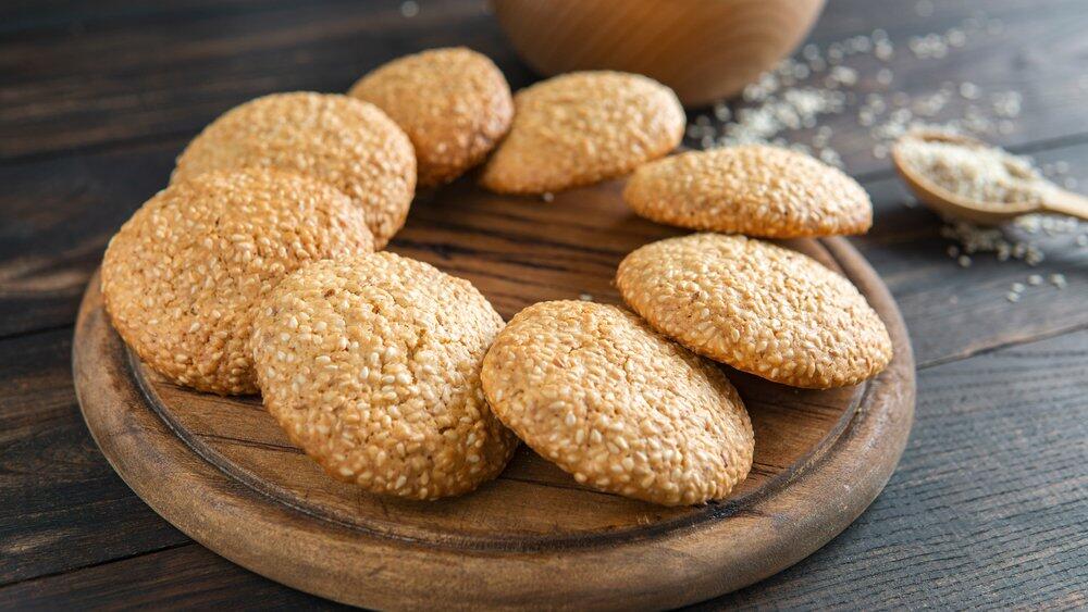 Goldbraune Sesamkekse mit Honig