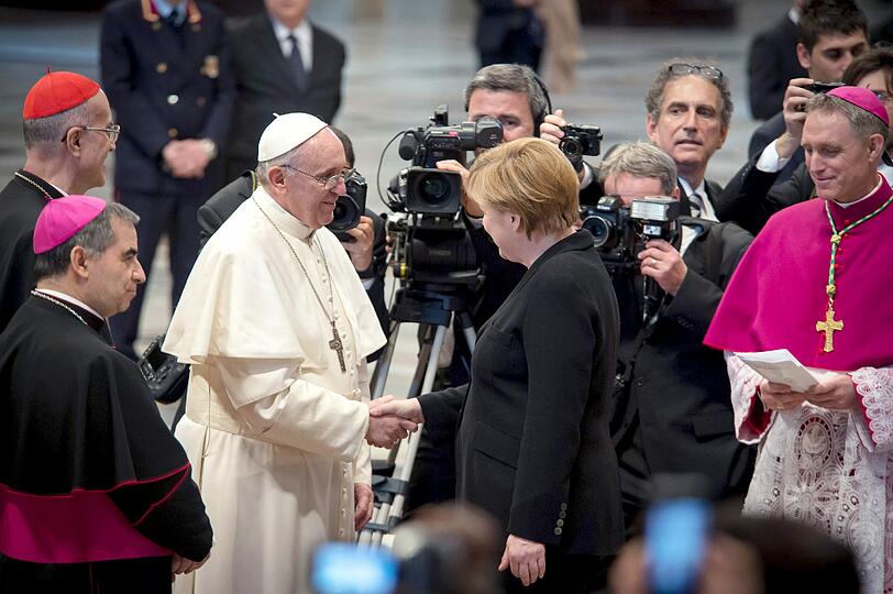 Aus Europa begrüßten den Papst im Petersdom unter anderen Bundeskanzlerin Angela Merkel, der italienische Staatspräsident Staatspräsident Giorgio Napolitano und Ministerpräsident Mario Monti, sowie die Regierungschefs Frankreichs und Spaniens, Jean-Marc Ayrault und Mariano Rajoy.