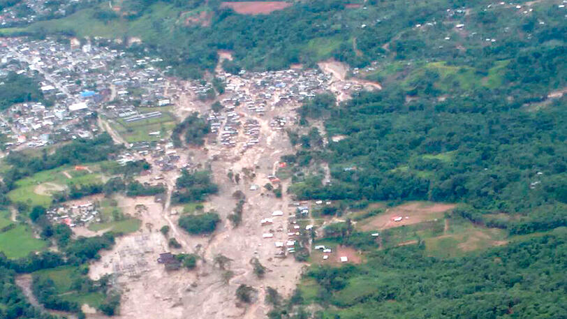 Die Kraft der Wasser- und Schlammmassen radiert Wohnviertel aus. Die Menschen im kolumbianischen Mocoa verlieren fast alles, Hunderte sterben. Auch weil die Menschen Raubbau an der Natur betrieben haben. Im Land werden Erinnerungen an die Katastrophe von Armero wach.