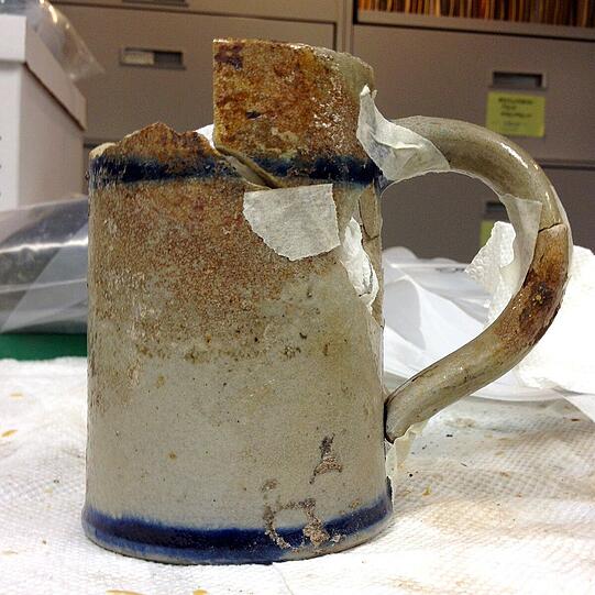 In nur etwas mehr als einer Woche entdeckten sie Hunderte Überbleibsel. „Es sind erstaunlich gut erhaltene Stücke dabei, einige sind sogar intakt“, sagt Loorya, die Chefin eines kleinen Archäologie-Büros ist. Kleine grüne Likörflaschen haben sie und ihre Kollegen zum Beispiel aus der Erde geholt, Scherben und Stücke von Tellern, Tassen, Mineralwasserflaschen und Krügen sowie einige bräunliche Flaschen, auf deren Siegel gut lesbar die Worte „Bürgerspital Würzburg“ stehen. Ein Weingut mit diesem Namen besteht in der unterfränkischen Stadt noch immer.