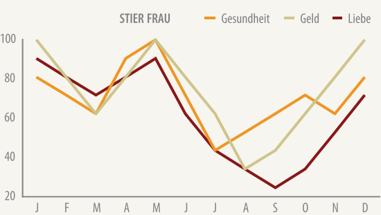 Der Beginn des Jahres schenkt ihr Vitalität: Sonne, Venus und Mars stärken bis zum Frühjahr die Lebensgeister, auch seelische Belastungen fallen leichter ab. Besonders im April blüht sie auf, tankt Sonne und viel Zuversicht. Die Sommermonate fordern dann etwas mehr Achtsamkeit: Überforderung durch zu viele Aufgaben oder zu viel Genuss könnte ihre innere Balance stören. Einfache Routinen, Spaziergänge im Grünen, bewusster Genuss und kreative Entspannung helfen, ihren Körper und Seele wieder in Einklang zu bringen. Im Herbst und Winter schenkt sie sich selbst Aufmerksamkeit, reflektiert ihre Bedürfnisse und findet neue Wege zum inneren Wohlgefühl.