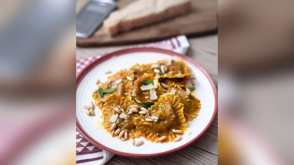 Der goldene Oktober lädt ein, die Küche in eine Nudelwerkstatt zu verwandeln. Selbstgemachte Kürbisravioli mit Salbeibutter verkörpern dabei die Essenz des Herbstes - süßlich-nussiger Kürbis trifft auf aromatischen Salbei.