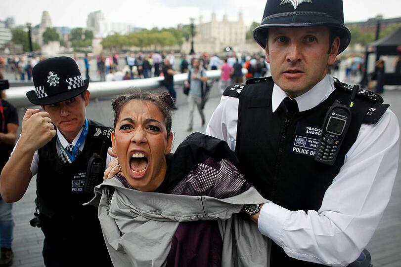Nackte Tatsachen: Gewohnt freizügig protestierten Anhänger der feministischen Organisation Femen in London - diesmal gegen islamistische Regimes und deren Unterstützung durch das olympische Kommitee. Hier sehen Sie die Bilder.
