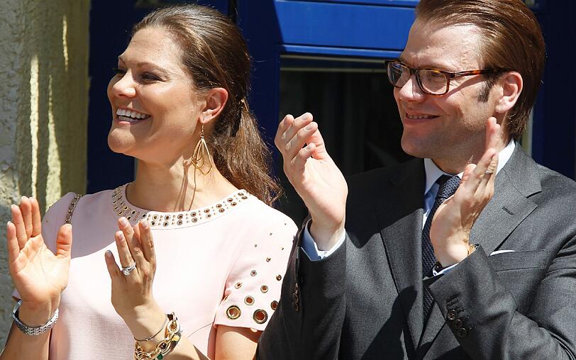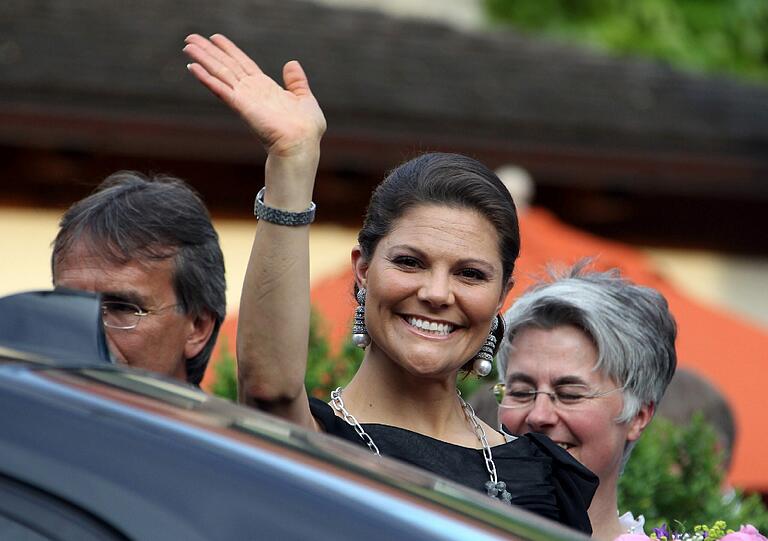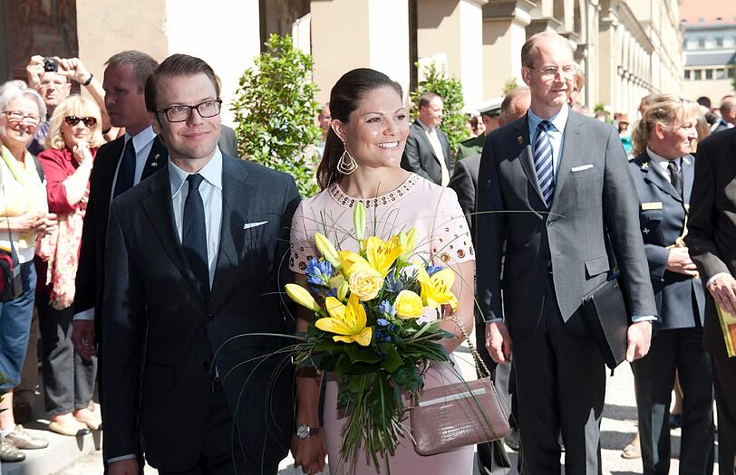 Victoria trägt ein Rosé-farbenes Kleid von Escada, hat die Haare zu eine Pferdeschwanz gebunden. In einem extra Auto fährt ihr Mann Daniel vor. Acht andere Wagen sind voll mit Bodyguards und Beratern. Unzählige Polizisten sichern den Hofgarten ab.