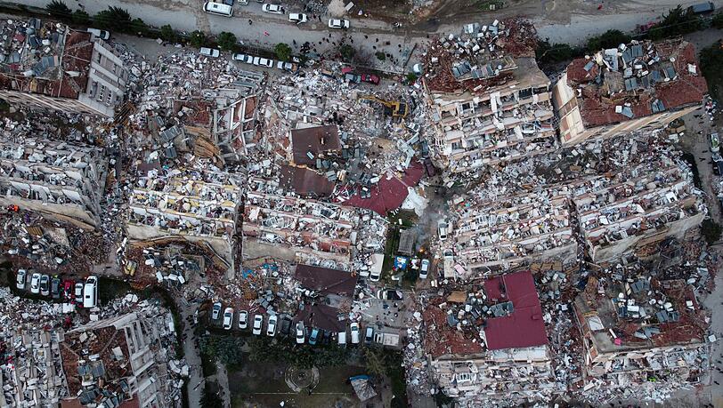 Selbst das Gebäude der Retter ist nur noch ein Schutthaufen. Der Sitz der Katastrophenschutzbehörde Afad im südtürkischen Hatay ist eingestürzt und zum Sinnbild für die große Zerstörung im Land geworden. Taschen für Erste Hilfe ragen aus den Trümmern, wie auf Bildern in den Medien zu sehen ist. Nach einem der schwersten Erdbeben der letzten Jahrzehnte in der Türkei und Syrien wird das Ausmaß der Katastrophe immer deutlicher: Gebäude sind eingestürzt, mehr als 8100 Menschen gestorben - 13,5 Millionen Menschen sind allein in der Türkei von der Katastrophe betroffen.