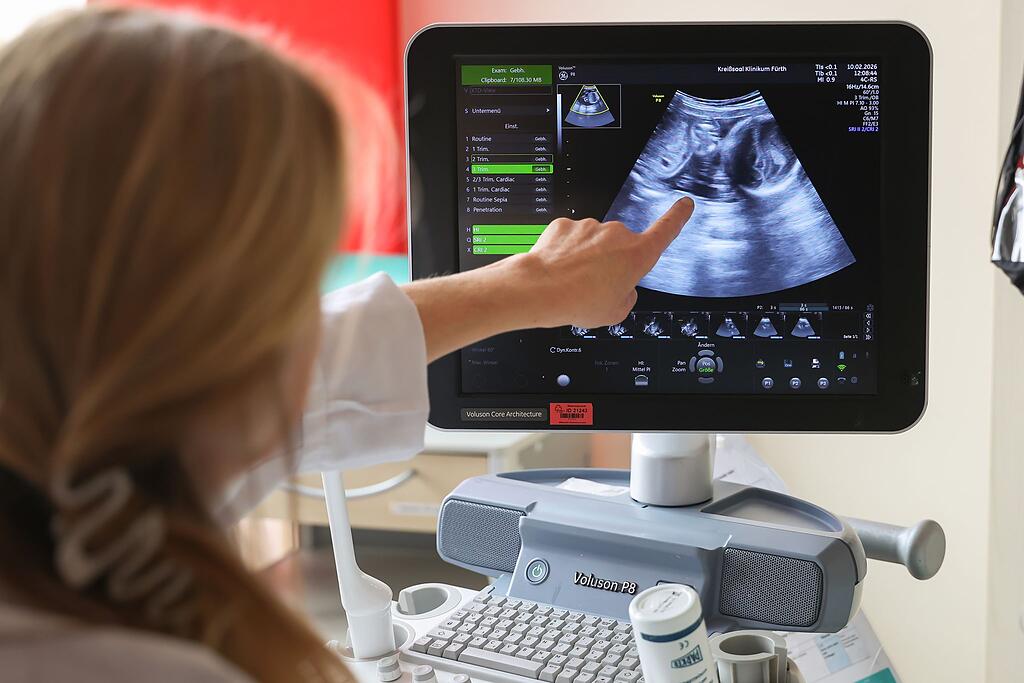 Jasmin Schmidt ist an diesem Tag etwas blass, als sie sich für den Ultraschall auf die Liege legt. Auf dem Monitor sind die beiden Babys im Bauch deutlich zu sehen. "Das schaut alles sehr gut aus", sagt Forster. Jasmin Schmidt strahlt. Andreas Rittner kümmert sich währenddessen um die anderen Zwillingsgeschwister. Nach dem Vormittag in der Krippe schlafen drei erschöpft in den Kinderwagen, nur Emilio kommt nicht zur Ruhe.