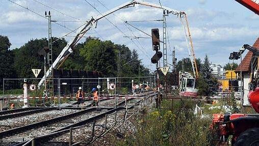 Die Bahn teilte am Mittwoch mit, dass die Verfüllung des Tunnels im Schadensbereich mit 10 500 Kubikmetern Beton bis Freitag abgeschlossen sein soll. Danach werde das alte Gleisbett abgetragen und eine rund 120 Meter lange und einen Meter dicke Platte betoniert, die rund drei Wochen aushärten müsse. Dann könnten neue Gleise, Schwellen und Schotter eingebaut werden.