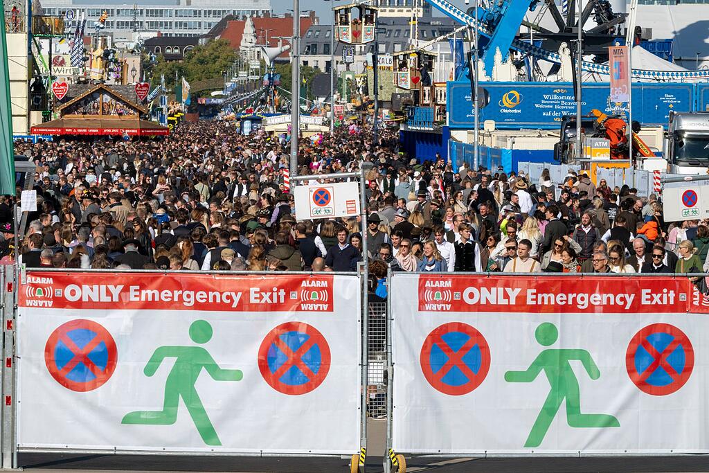 Bereits am Nachmittag wurden die Festzelte und Biergärten für weitere Besucherinnen und Besucher ohne Reservierung geschlossen. Wegen des starken Andrangs wurden zudem nach Angaben der Feuerwehr die Haupteingänge an der U-Bahn-Station Theresienwiese gesperrt.