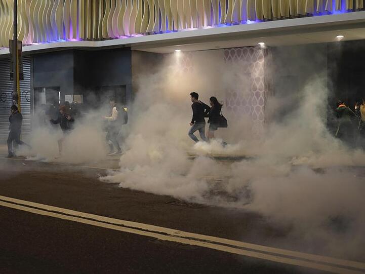 Trotz Aufforderungen der Einsatzkräfte lösten sich die Menschenmengen nicht auf. Gegen Mitternacht wünschten die Demonstranten der Polizei sogar lautstark "Frohe Weihnachten", ehe kurz darauf Brandsätze geworfen wurden. Auf der Straße vor dem historischen "Peninsula"-Hotel ging die Polizei erstmals in diesem Monat wieder mit Tränengas gegen Demonstranten vor. Auch Pfefferspray wurde eingesetzt.