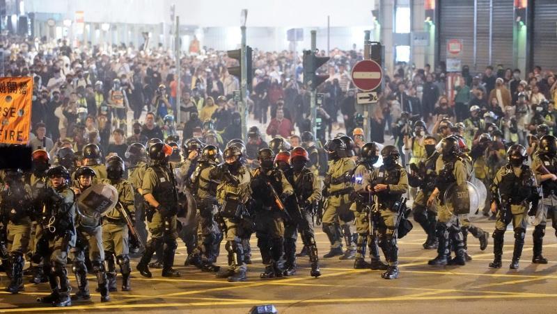 Trotz Aufforderungen der Einsatzkräfte lösten sich die Menschenmengen nicht auf. Gegen Mitternacht wünschten die Demonstranten der Polizei sogar lautstark "Frohe Weihnachten", ehe kurz darauf Brandsätze geworfen wurden. Auf der Straße vor dem historischen "Peninsula"-Hotel ging die Polizei erstmals in diesem Monat wieder mit Tränengas gegen Demonstranten vor. Auch Pfefferspray wurde eingesetzt.