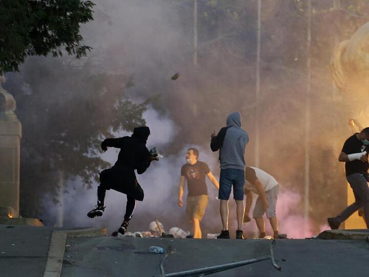 Die Militanten lösten sich bei den Protesten in Serbien von den friedlichen Demonstranten ab und suchten den Konflikt mit der Polizei, wie die Zeitung "Danas" erichtete. Die Radikalen, zumeist aus dem Milieu der Fußball-Hooligans stammend, warfen Steine und Feuerwerkskörper auf die Polizisten. Diese trieben die Menge mit Tränengas und Schlagstöcken auseinander. Dabei schlugen die Beamten auch auf friedliche Demonstranten ein. Manche von ihnen lagen bereits am Boden, wie Augenzeugen berichteten.