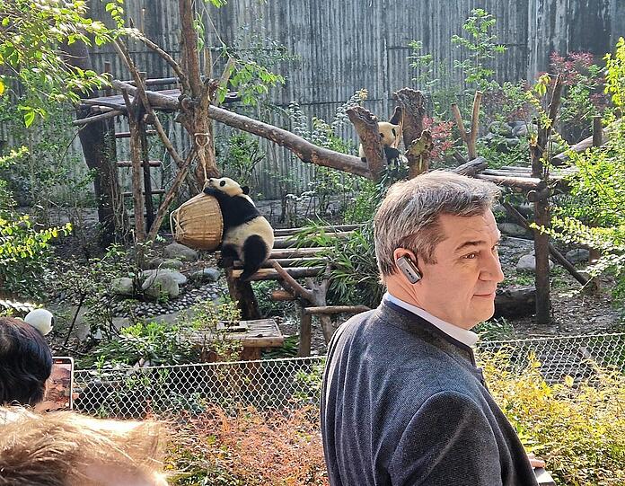 Markus Söder lächelt trotzdem. Pandas seien niedliche, knuffige, wunderschöne Tiere, sagt er. "Außerdem sind sie friedlich und insofern gut geeignet für den Begriff der Panda-Diplomatie."