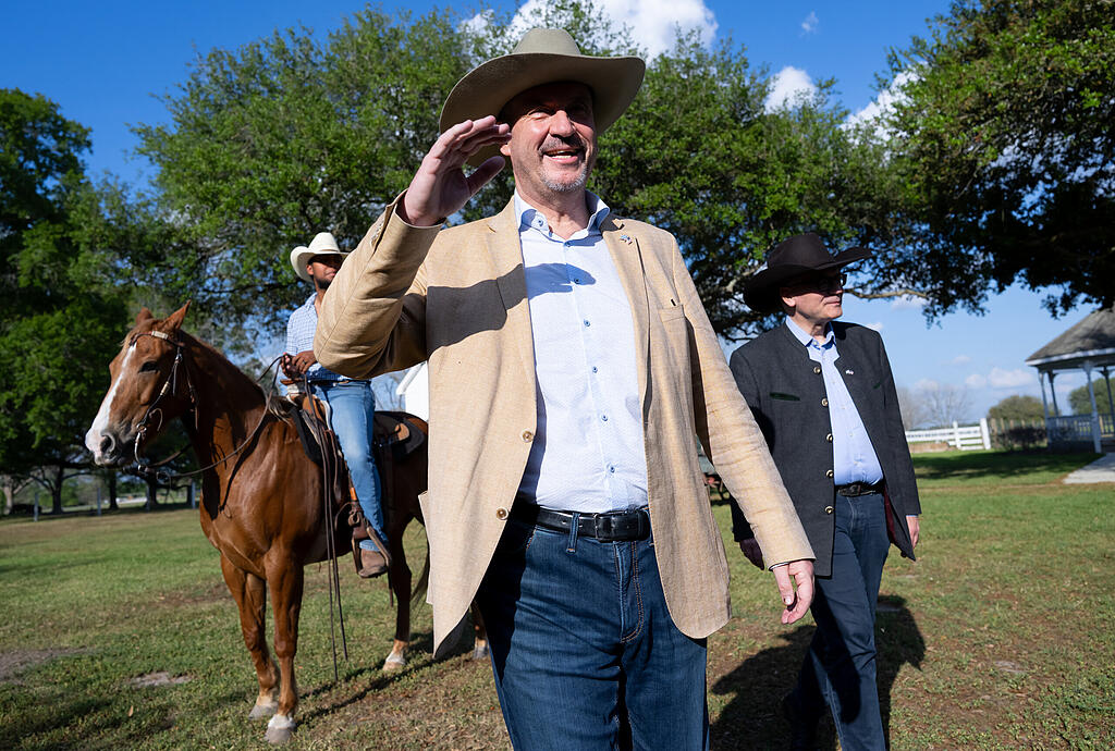 Auf besagter Ranch in der Nähe von Houston tragen viele der Gäste Cowboy-Hüte. Den komplett aus Holz gebauten Häusern fehlen nur die Saloon-Türen, um direkt einem Western zu entspringen. Und eine Band aus einem Gitarristen, einem Kontrabass- sowie einem Banjo-Spieler erzählt den Gästen temporeich von der Schönheit Texas'. Um alle Klischees zu erfüllen: Natürlich begrüßt auch ein echter Cowboy – mit Hut, Pferd und Lasso – den Ministerpräsidenten, als dieser aus dem Auto steigt.