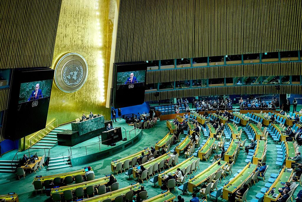 Zu Beginn der Rede hatten Dutzende Diplomaten aus Protest den Sitzungssaal am East River verlassen. Netanjahu, der mit stoischem Blick am Podium abwartete, sprach vor teilweise leeren Rängen. Während der Rede gab es vereinzelt Zwischenrufe, aber auch demonstrativen Applaus, offensichtlich von Unterstützern des Ministerpräsidenten unter anderem auf der Besuchertribüne.