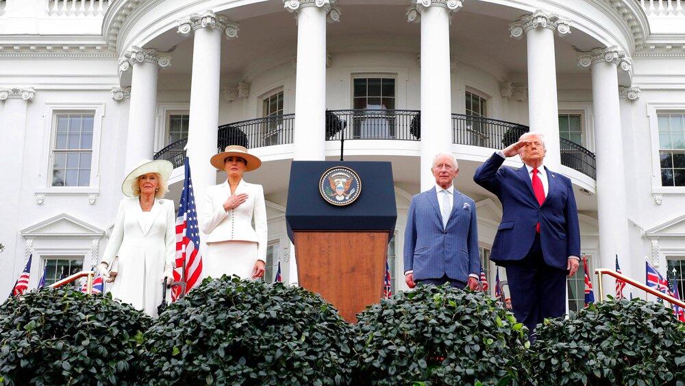 Nachdem vor dem Weißen Haus die Nationalhymnen erklangen, setzte Trump zu seiner Rede an. Er und seine Ehefrau würden niemals ihren Besuch auf Schloss Windsor im vergangenen Jahr vergessen, erklärte er laut der BBC. Der 79-Jährige schwärmte demnach weiter, dass König Charles III. einen "wunderschönen Akzent" habe und "ein sehr eleganter Mann" sei.