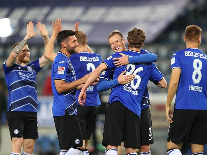 Die Mannschaft feierte schon am Montagabend die Rückkehr in die Fußball-Bundesliga nach elf Jahren. Und den achten Aufstieg, der die Ostwestfalen zusammen mit dem 1. FC Nürnberg zum Rekord-Aufsteiger macht. Doch ohne Fans, im (fast) leeren Stadion fühlte es sich auch ein bisschen seltsam an. Die La Ola vor der Haupttribüne wurde nur symbolisch erwidert, es gab keinen Platzsturm und keine Bierdusche. Stattdessen stand noch eine Stunde nach Schlusspfiff fast die ganze Mannschaft um einen Kasten Bier neben der Ersatzbank. Die Geschäftsführer Samir Arabi und Markus Rejek sowie Präsident Hans-Jürgen Laufer stießen zwischenzeitlich dazu.
