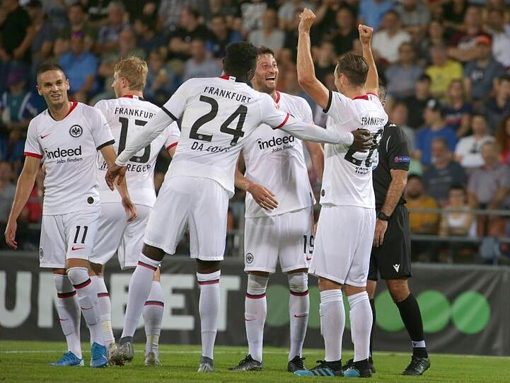 Vor herrlicher Bergkulisse erzielten Filip Kostic (11./27. Minute), Dominik Kohr (41.), Goncalo Paciencia (53.) und Mijat Gacinovic (63.) die Tore für die Hessen, für die das Überstehen der dritten Qualifikationsrunde im Rückspiel am kommenden Donnerstag (20.30 Uhr/Nitro) nur noch Formsache sein sollte.