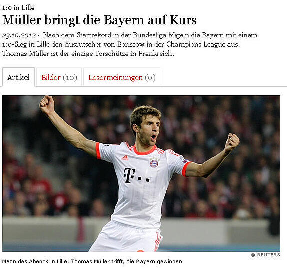 Siegtorschütze Thomas Müller ist der gefeierte Mann des Champions League-Gruppenspiels der Bayern gegen Lille. Lesen Sie hier die internationalen Pressestimmen.