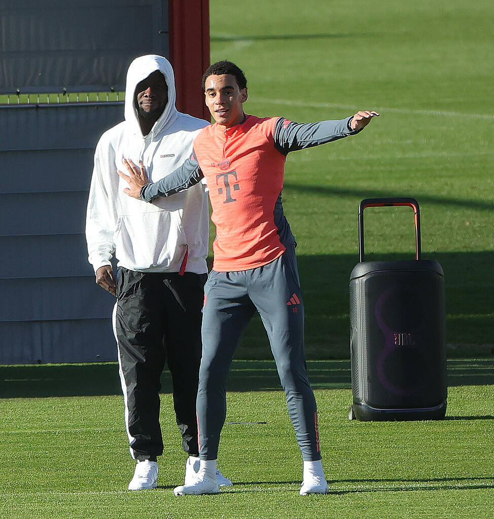 Wenn Jamal Musiala den Trainingsplatz an der Säbener Straße betritt, wird es meistens laut. Sehr laut sogar. Der 22-Jährige ist beim FC Bayern gemeinsam mit seinen Kumpels Michael Olise und Alphonso Davies für die musikalische Untermalung beim Aufwärmen zuständig – und von dieser Tradition weicht Musiala auch während seiner Reha nicht ab.