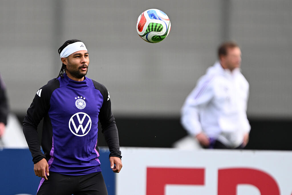 Weißes Stirnband, prächtige Laune. Serge Gnabry alberte auf dem Trainingsplatz mit Mützen-Träger Leon Goretzka herum. Auch mit Jonathan Tah, Aleksandar Pavlovic und Joshua Kimmich hatte Gnabry großen Spaß – mit Kumpel Kimmich immer, schließlich ist Gnabry dessen Trauzeuge. Nur zwei der Schwaben-Connection bei der Nationalelf.