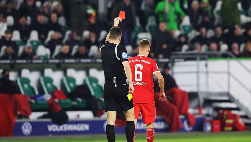 Wie auch die zweite Gelbe Karte, als die Bayern einen Ball am gegnerischen Strafraum verloren und Wolfsburgs Maximilian Arnold die Umschaltsituation einleitete. Gebremst, weil am Trikot gezupft und am Arm gezogen von Kimmich. "Auf keinen Fall! Auf gar keinen Fall!", schimpfte der Sechser noch auf dem Platz, nachdem er die Ampel-Karte für das taktische Foul sah.