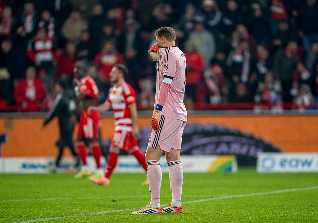 MANUEL NEUER – NOTE 5: Im Glück als der Kopfballtreffer von Ansah vom VAR wegen Abseits einkassiert wurde (9.). Lief als Pink Panther ganz in Rosa auf, hechtete wie Münchens Olympia-Dackel von 1972 nach der Kugel, die Doekhi nach einer Ecke aufs Tor brachte (27.). Neuer flutschte der Ball durch die Beine - das 0:1. Ansonsten tadellos.