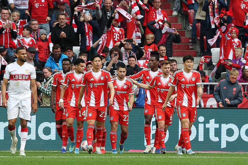 Jetzt ist es offiziell! Die Schale bleibt in München. Der FC Bayern gewinnt zum Abschluss des 30. Spieltages gegen den VfB Stuttgart mit 4:2. Danach sah es zunächst nicht aus. Die Schwaben gingen durch Chris Führich (21.) in Führung. Das aktivierte bei den zuvor etwas behäbig wirkenden Münchnern wohl den Meisterknopf.