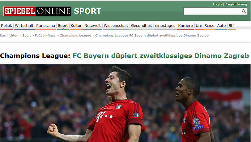 Neben Lewandowski trafen vor 70 000 Zuschauern gegen ein überfordertes Team aus Zagreb Douglas Costa und Mario Götze. "Wir haben vorne sehr flexibel gespielt und die Räume gut genutzt", sagte Weltmeister Götze. "Der Qualitätsunterschied war riesengroß", gestand Dinamo-Trainer Zoran Mamíc, der keinen Grund hatte, beschwingt in seinen 44. Geburtstag am Mittwoch hineinzufeiern.