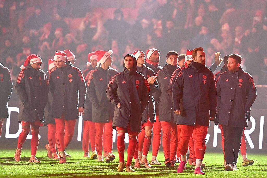 So hatte sich der FC Bayern seine Weihnachtsfeier sicher nicht vorgestellt. Nur 2:2 gegen den Tabellenletzten Mainz 05 – und das im letzten Heimspiel des Jahres. Entsprechend gefrustet nahmen die Stars um Harry Kane, der per Elfmeter zumindest die erste Bundesliga-Niederlage in dieser Saison verhindert hatte, die Lichtershow nach dem Schlusspfiff zur Kenntnis. Die Mainzer Partycrasher hatten an diesem kalten Abend in der Arena deutlich mehr zu feiern.