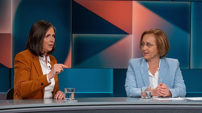 "Es gibt kein bisschen schwanger", kommentierte das Strack-Zimmermann trocken, "entweder man ist in der EU drin oder nicht". Dass die EU Schwächen hätte, wollte sie nicht leugnen. Doch das Kind hätte einen Namen: Kommissionspräsidentin Ursula von der Leyen. Diese hätte die Bürokratie verfielfacht und damit die "Wirtschaft so abgewürgt, dass unsere Unternehmen in Europa nicht mehr konkurrenzfähig" wären. Zudem hätte die Kommissionspräsidentin nicht ausgeschlossen, mit den Rechten und insbesondere mit der italienischen Ministerpräsidentin Giorgia Meloni zu koalieren. "Das macht mir mehr Sorgen", schoss sich die FDP-Politikerin auf von der Leyen ein.